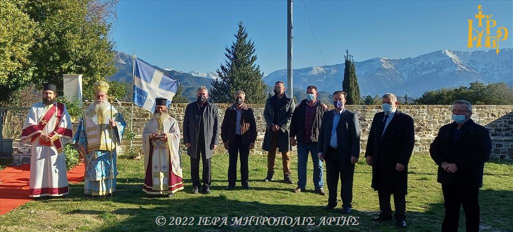 Στο πέρας της Θείας Λειτουργίας, ο Σεβασμιώτατος τέλεσε Δοξολογία. Ακολούθησε κατάθεση στεφάνων στο Ηρώο από τις τοπικές Αρχές και Φορείς και κατόπιν, ομιλία σχετική με την Επανάσταση της Ηπείρου.