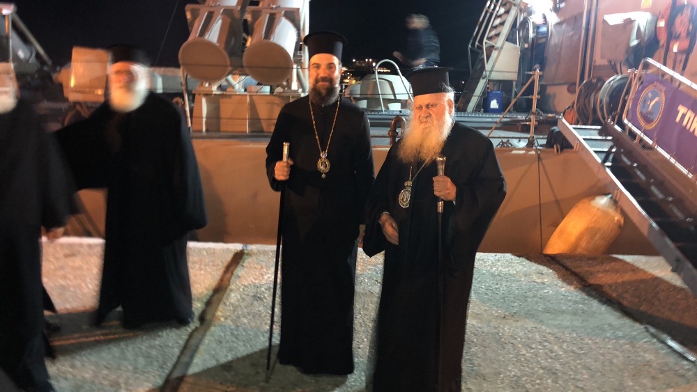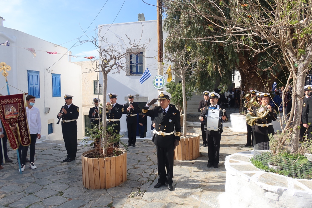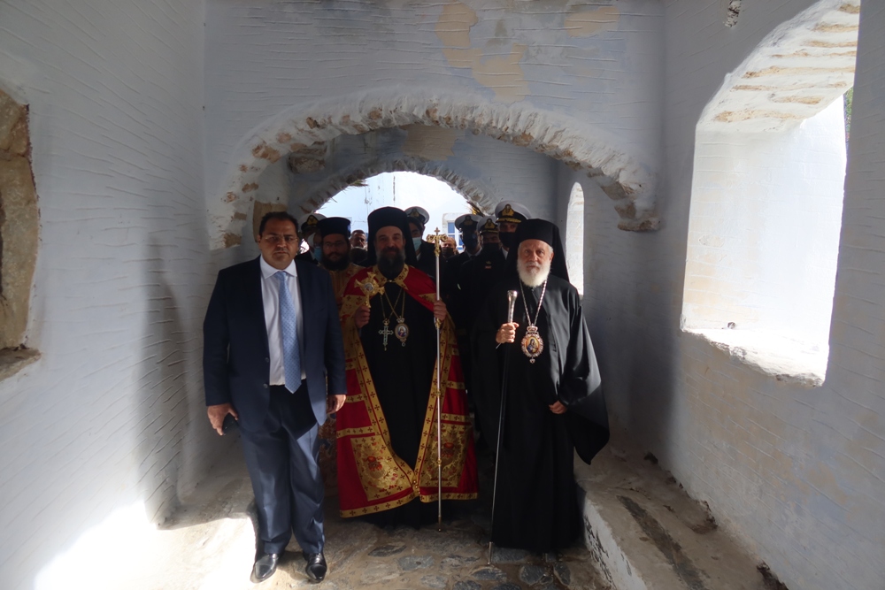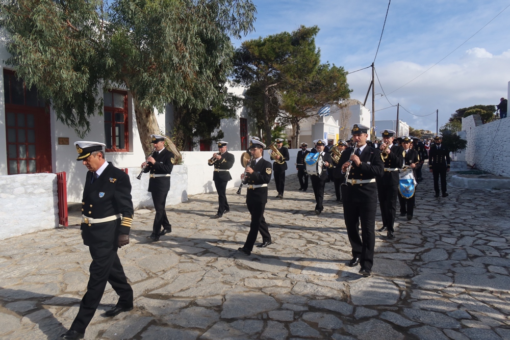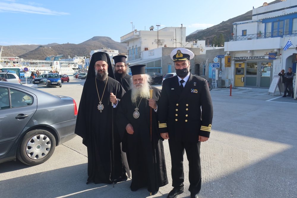 Στην θερμή υποδοχή επίσης παρέστησαν εκπρόσωποι του πολεμικού Ναυτικού, με επικεφαλής τον Αρχιπλοίαρχο του Πολεμικού Πλοίου «ΜΠΛΕΣΑΣ», ο Διοικητής της 6ης Περιφέρειας ΛΣ κ. Γκύζης, ο Διοικητής του ΑΤ Αμοργού και πλήθος πιστού λαού, της Φιλαρμονικής του Λιμενικού Σώματος όπου παιάνιζαν θριαμβικά εμβατήρια.