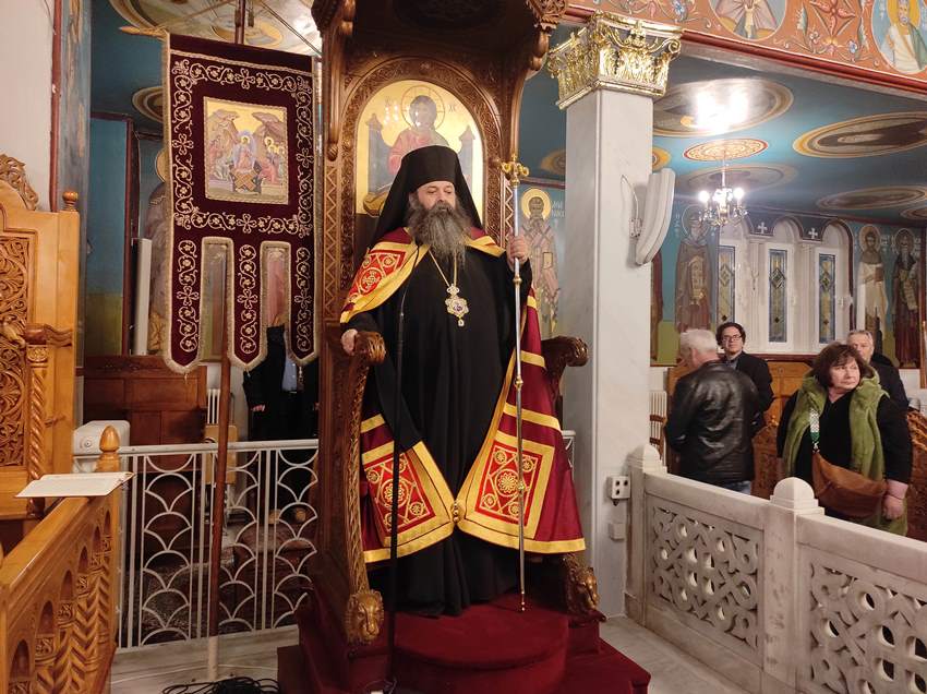 Με τις ευλογίες του Σεβασμιωτάτου Μητροπολίτου μας κ. Διονυσίου και την ευλογητή παρουσία του ο Θεοφιλέστατος Επίσκοπος Κεγχρεών κ. Αγάπιος συνοδευόμενος από τους Αρχιδιάκονο π. Χρήστο Χίλια και τον Διάκονο π. Άγγελο Σαλάτα, τέλεσε την Ι. Ακολουθία των Δ’ Χαιρετισμών στον Ενοριακό Ι. Ναό Κοιμήσεως της Θεοτόκου Ιωνίας (Συνοικισμού) Κορίνθου την Παρασκευή, 28η Μαρτίου 2025, πλαισιούμενος από τους Πανοσ. Αρχιμ. π. Δαμασκηνό Γεννηματά, Εφημέριο του Καθεδρικού Ι. Ναού Αποστόλου Παύλου, Αιδεσ. Πρωτ/ρο π. Ιωάννη Δελημπαλτά και Σταυροφόρο – Οικονόμο π. Δημήτριο Στεργιόπουλο, Εφημερίους του εν λόγω Ι. Ναού.