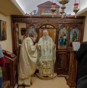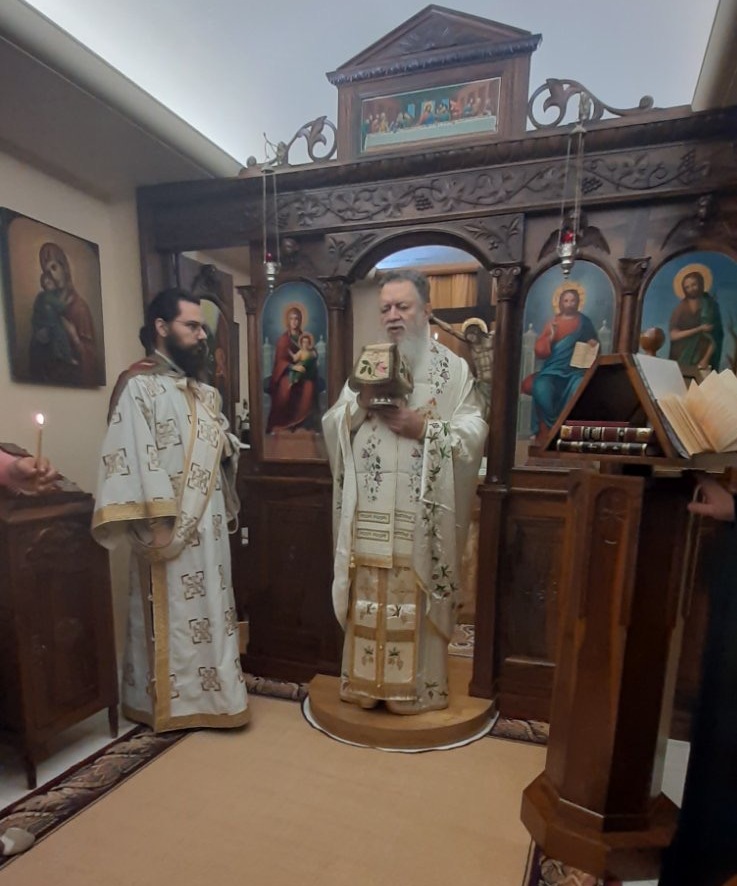 Ο Σεβασμιώτατος χοροστάτησε στον Όρθρο και τέλεσε την Θεία Λειτουργία στο Ιερό Παρεκκλήσιο του Επισκοπείου, το οποίο τιμάται στον Ευαγγελισμό της Θεοτόκου.