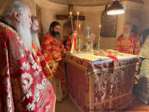 Στην Αρχιερατική Θεία Λειτουργία, κατά την οποία είχε τεθεί προς προσκύνηση των παρισταμένων πιστών το ιερό λείψανο της αγίας, έλαβαν μέρος ο Ηγούμενος της Μονής Πανοσιολ. Αρχιμ. Αμβρόσιος Σκαρβέλης, ο Παν/τος Προηγούμενος Αρχιμ. Φιλόθεος Σπανουδάκης, ο Αδελφός της Μονής και ιερατικώς Προϊστάμενος Ενορίας Ι. Κ. Ναού Αγίας Φωτεινής πόλεως Ιεράπετρας, Πανοσιολ. Αρχιμ. Πορφύριος Αγγελάκης, ο Συνταξ. Εφημέριος Αιδ/τος Σκευοφύλακας π. Γεώργιος Τσικαλάκης, ο Αιδεσιμολ. Πρωτ. Φιλοκτήμων Αυγουστινάκης, ιερατικώς Προϊστάμενος Ενορίας Ευαγγελισμού Θεοτόκου πόλεως Σητείας, και ο Ιερολ. Διάκονος Τίτος Ματαλλιωτάκης.
