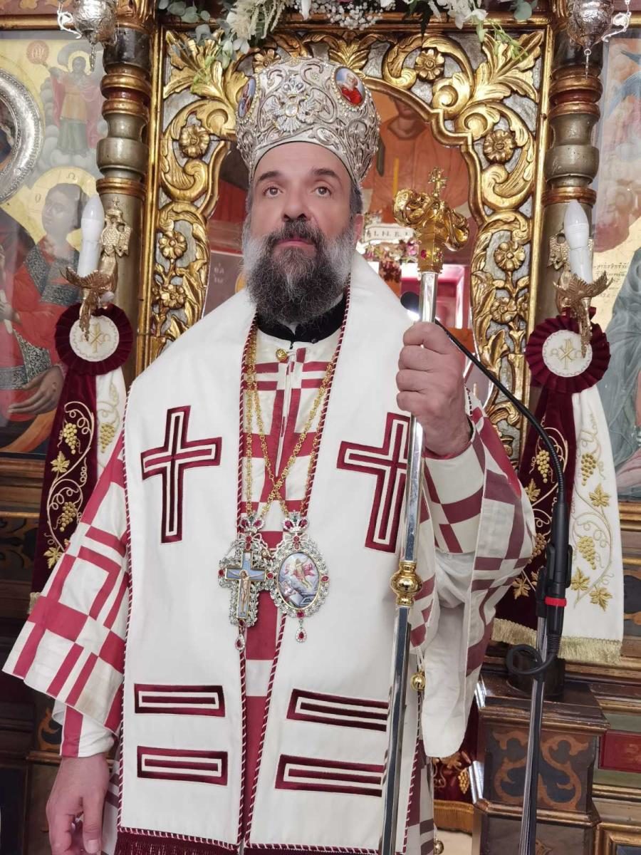 Την κυριώνυμο ημέρα χοροστάτησε του όρθρου και τέλεσε το μυστήριο της Θείας Λειτουργίας στον Ιερό Ναό Αγίας Θεοδοσίας Ακρωτηρίου.
