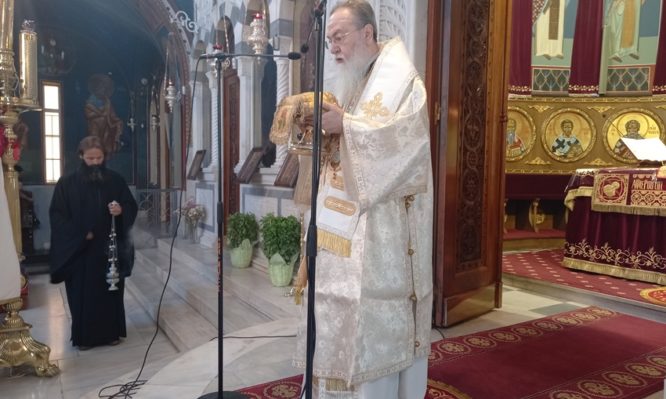 Πριν την απόλυση της Θ. Λειτουργίας ο σεπτός Ποιμενάρχης μας,επεσήμανε ότι με την σημερινή Θ. Λειτουργία, της Αποδόσεως του Πάσχα, κλείνει ο εορτολογικός κύκλος της Αναστάσεως του Κυρίου μας. Η Εκκλησία μας χρησιμοποιεί αυτή την περίοδο για να μας διδάξει ότι μετά την Ανάσταση του Κυρίου μας ο θάνατος γίνεται η αρχή της αιωνίου ζωής και ο Χριστός με την Ανάστασή Του «ὁδοποίησεπάσῃσαρκὶτὴνἐκνεκρῶνἈνάστασιν,καθότιοὐκἦνδυνατὸνκρατεῖσθαιὑπὸ τῆς φθορᾶςτὸνἀρχηγόν τῆς ζωῆς» (Θ. Λειτουργία Μ. Βασιλείου), οδηγώντας μας στην απόλαυση της Αιωνίου Ζωής. Ο Χριστός αναστήθηκε παραδίδοντάς μας την επαγγελία της μελλούσης ζωής και της κοινής αναστάσεως και καθιστώντας μας, όλους τους Χριστιανούς, ευτυχισμένουςανθρώπους που μεταφέρουν το μήνυμα της Αναστάσεως στον πονεμένο, πληγωμένο, απογοητευμένο και προδομένο από τους υπόλοιπους ανθρώπους και τους άρχοντες κόσμο.