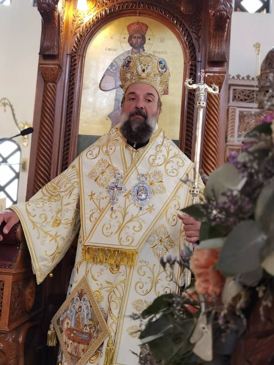 Τον Σεβασμιώτατο πλαισίωσαν ο αιδεσιμολογιώτατος Γενικός Αρχιερατικός Επίτροπος της Ιεράς Μητροπόλεως και Προϊστάμενος του Ιερού Ναού, πρωτοπρ. π. Νικόλαος Σιγάλας, ο πρεσβ. π. Κυριάκος Καραμολέγκος και οι ιεροδιάκονοι της Ιεράς Μητροπόλεως.