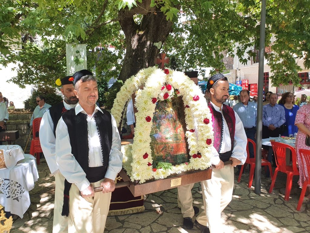 Στην κεντρική πλατεία του χωριού τελέσθηκε η ακολουθία της Αρτοκλασίας και ο Σεπτός μας Ποιμενάρχης αναφέρθηκε με λόγους επίκαιρους στην σημερινή εορτή και παρότρυνε τους νέους και τα παιδιά να είναι κοντά στην Παναγία και στην Εκκλησία, γιατί μόνο μέσα από αυτό τον δρόμο, θα μπορούν να έχουν ελπίδα και προοπτική, ενώ δεν παρέλειψε να κάνει και αναφορά στην απελευθέρωση των δύο Ελλήνων Αξιωματικών, την οποία και χαρακτήρισε ως ένα Θαύμα και ένα μεγάλο δώρο, που επιτέλεσε η Παναγία μας, ανήμερα της εορτής Της.