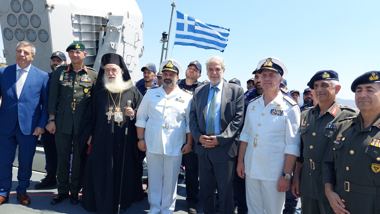 Ἐντυπωσιακή ὑπῆρξε ἡ τιμητική διέλευση ἀεροσκαφῶν τῆς Πολεμικῆς μας Ἀεροπορίας καί ἡ παρουσία τῆς Πυραυλακάτου “Ρίτσος” στό Λιμάνι τοῦ Πυθαγορείου τήν ὁποία ἐπισκέφθηκαν ὁ Σεβασμιώτατος καί οἱ λοιποί ἐπίσημοι.