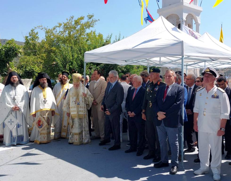Παρέστησαν ὁ Ἐκπρόσωπος τῆς Ἑλληνικῆς Κυβερνήσεως Ὑπουργός Ναυτιλίας καί Νησιωτικῆς Πολιτικῆς κ. Χρῆστος Στυλιανίδης, ὁ Ἀρχηγός ΓΕΕΘΑ Στρατηγός Δημήτριος Χούπης, ὁ Ἀρχηγός Στόλου κ. Πολυχρόνης Κουλούρης, ὁ Περιφερειάρχης Βορείου Αἰγαίου κ. Κωνσταντίνος Μουτζούρης,ὁ Γενικός Γραμματέας Αἰγαίου καί Νησιωτικῆς Πολιτκῆς κ. Ἐμμανουήλ Κουτουλάκης, ὁ Γενικός Γραμματέας Μεταναστευτικῆς Πολιτικῆς κ. Ἐμμανουήλ Λογοθέτης, λοιποί Πολιτικοί καί Στρατιωτικοί Ἂρχοντες, πλειάδα τῶν Ἱερέων μας καί πλῆθος Εὐσεβῶν Χριστιανῶν ἐντοπίων, ἀποδήμων καί ἐπισκεπτῶν.