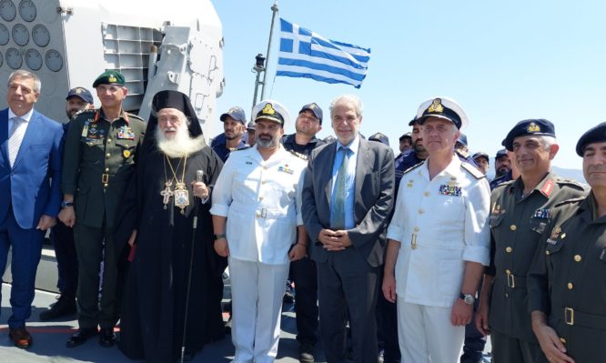 Ἐντυπωσιακή ὑπῆρξε ἡ τιμητική διέλευση ἀεροσκαφῶν τῆς Πολεμικῆς μας Ἀεροπορίας καί ἡ παρουσία τῆς Πυραυλακάτου “Ρίτσος” στό Λιμάνι τοῦ Πυθαγορείου τήν ὁποία ἐπισκέφθηκαν ὁ Σεβασμιώτατος καί οἱ λοιποί ἐπίσημοι.