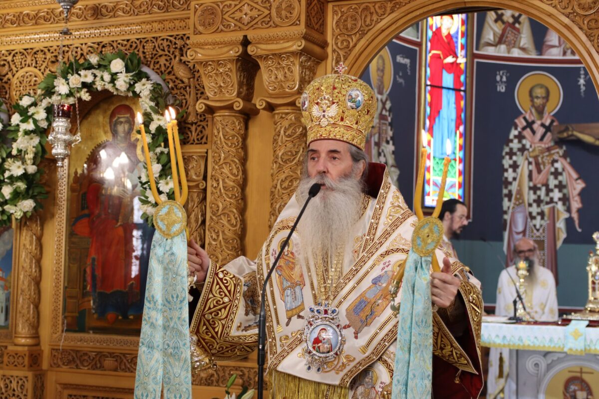 Σήμερα το πρωί τελέστηκε Αρχιερατική Θεία Λειτουργία, όπου στο κήρυγμά του ο Σεβασμιώτατος, αρχικά, ανέφερε πως «κάθε ημέρα που τιμάται η Υπεραγία Θεοτόκος αποκαλύπτεται με εκφαντορικό τρόπο, με θεμελιακό τρόπο, το υπεροχικό ‘’είναι’’ του Παναγίου Θεού. Το ανεπανάληπτο και υπερβατικό Του ήθος».