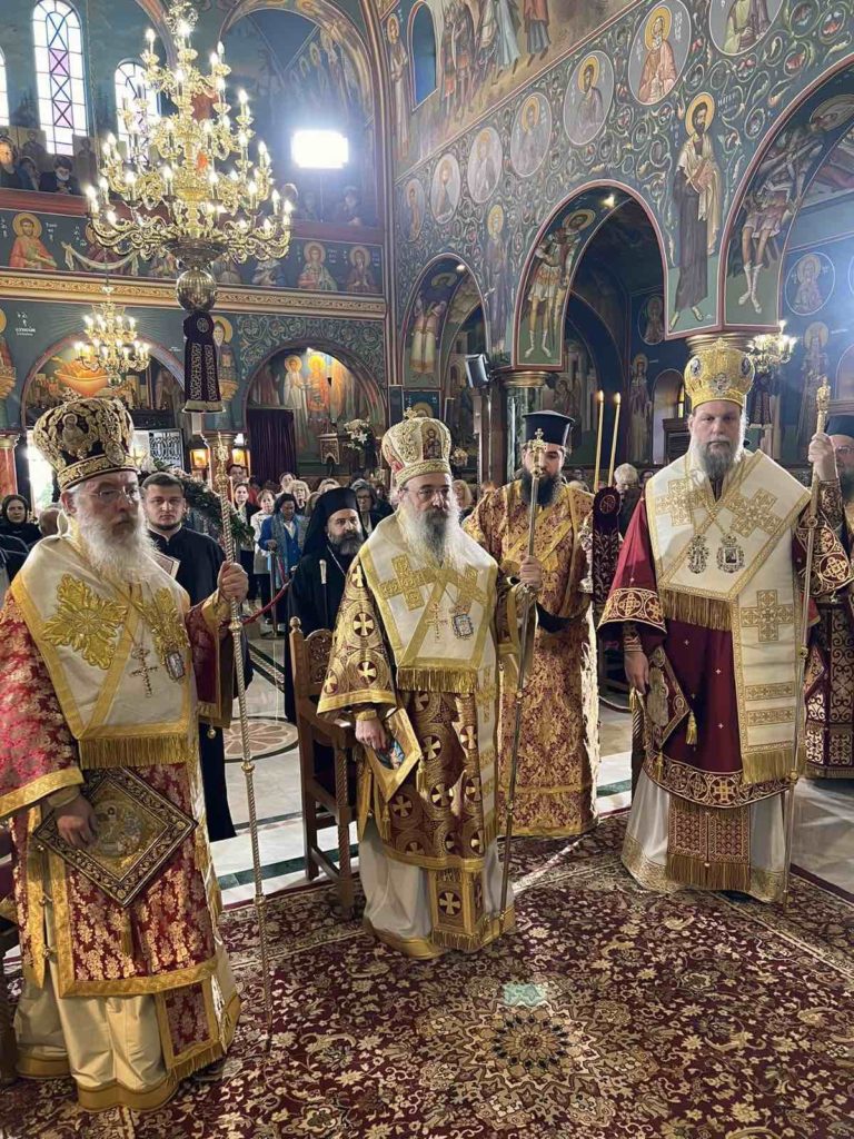 Την κυριώνυμο ημέρα της εορτής, Κυριακή 3 Νοεμβρίου 2024 (E΄ Λουκά), τελέσθηκε η Πανηγυρική Πολυαρχιερατική Θεία Λειτουργία, προεξάρχοντος του Σεβασμιωτάτου Μητροπολίτου Πατρών κ. Χρυσοστόμου και συλλειτουργούντων των Σεβασμιωτάτων Μητροπολιτών Κηφισίας, Αμαρουσίου, Ωρωπού και Μαραθώνος κ. Κυρίλλου και του οικείου Ποιμενάρχου Νέας Ιωνίας, Φιλαδελφείας, Ηρακλείου και Χαλκηδόνος κ. Γαβριήλ και με τη συμμετοχή πλειάδας κληρικών, ενώ εντός του Ιερού Βήματος παρέστη συμπροσευχόμενος ο Σεβασμιώτατος Μητροπολίτης Ανέων κ. Μακάριος.