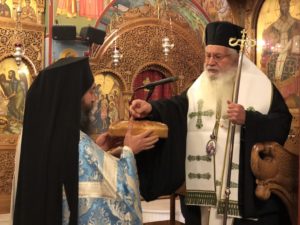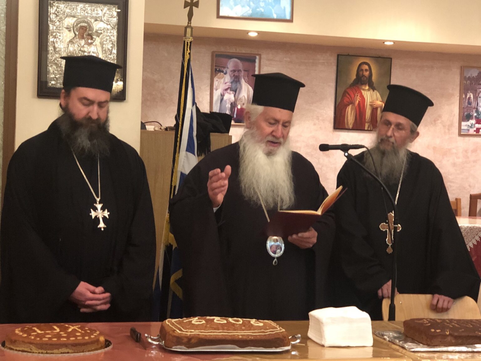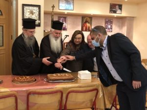 Στο τέλος, όπως κάθε χρόνο, ο Σεβασμιώτατος ευλόγησε τη βασιλόπιτα της ενορίας και ευχήθηκε καλή και ευλογημένη χρονιά σε όλους.