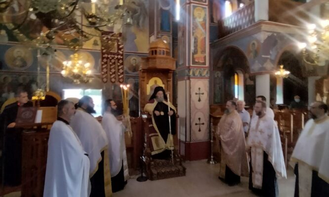 Με λαμπρότητα εορτάστηκε η μνήμη της Μεταστάσεως του Αγίου Ενδόξου Αποστόλου και Ευαγγελιστού Ιωάννου του Θεολόγου στον Εορτάζοντα ομώνυμο Ιερό Ναό στην περιοχή Αγιος Ιωάννης (Μπισδουνάκι) Ιωαννίνων. Το εσπέρας της Εορτής Τετάρτη 25 Σεπτεμβρίου τελέστηκε ο Μέγας Πανηγυρικός Εσπερινός μετ’ Αρτοκλασίας χοροστατούντος του Σεβασμιωτάτου Μητροπολίτου Ιωαννίνων κ.κ. Μαξίμου. Το πρωί ανήμερα της Εορτής Πέμπτη 26 Σεπτεμβρίου ο Σεβασμιώτατος ποιμενάρχης μας κ.κ. Μάξιμος μετέβη στον ως Άνω Ιερό Ναό όπου χοροστάτησε του Εόρτιου Όρθρου και προεξήρχε της Πανηγυρικής Θείας Λειτουργίας πλαισιούμενος από πλειάδα Ιερέων.