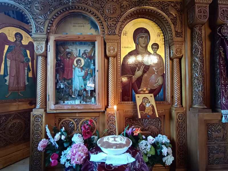 Μετά τήν θείαν Λειτουργίαν ὁ καλῶς ἐπιμελούμενος τῶν τῆς Μονῆς ἡγούμενος Ἀρχιμανδρίτης π. Ἐπιφάνιος ἐδεξιώθη τήν Ἀρχιερατικήν Συνοδείαν καί τό ἐκκλησίασμα εἰς τό ἡγουμενεῖον καί τό προαύλιον τῆς Ἱερᾶς Μονῆς.