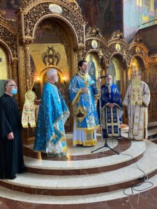 Στον Όρθρο χοροστάτησε ο Θεοφιλέστατος Επίσκοπος Κλαυδιουπόλεως κ. Ιάκωβος ενώ στη Θεία Λειτουργία προεξήρχε ο Σεβασμιώτατος Μητροπολίτης Κολωνείας κ. Αθανάσιος.