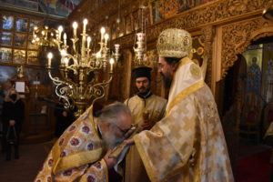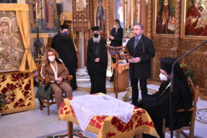 Κατά το τέλος της Θείας Λειτουργίας ο Σεβ. κ. Καλλίνικος απευθυνόμενος στον Γενικό Αρχιερατικό Επίτροπο π. Φώτιο Λεβέντη, που διακονεί την Ιερά Μητρόπολη επί σειρά ετών καθώς και πέντε Αρχιερείς, του ευχήθηκε έτη πολλά και ευλογημένα . Ο π. Φώτιος τυγχάνει χειροτονία του Μακαριστού Μητροπολίτου Καστορίας κυρού Δωροθέου και υπηρετεί την Ιερά Μητρόπολη από την θέση του Γενικού Αρχιερατικού Επιτρόπου από το 2007 καθώς και τον Ιερό Μητροπολιτικό Ναό Καστοριάς ως εφημέριος. Μετά τις ευχές ο Σεβασμιώτατος δώρησε στον π. Φώτιο μία εικόνα του Αγίου Καλλινίκου Επισκόπου Εδέσσης.
