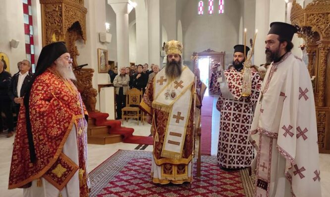 Ο Πρωτοσύγκελλος της Ι. Μητροπόλεως μας Θεοφιλέστατος Επίσκοπος Κεγχρεών κ. Αγάπιος ετέλεσε τον πανηγυρικό Όρθρο και την Θ. Λειτουργία στο εορτάζον Ι. Ησυχαστήριο Αναλήψεως – Αγίου Γερασίμου Περαχώρας με συλλειτουργούς τον Πανοσ. Αρχιμ. π. Αντίπα Νικηταρά, Προηγούμενο της Ι. Μονής Αγίου Ιωάννου Θεολόγου Πάτμου, τον Αιδεσ. Πρωτ/ρο π. Νικόλαο Γκάτσεβιτς, Εφημέριο Ιερού Προσκυνήματος Αγίας Βαρβάρας ομωνύμου Δήμου Αττικής και τους Διακόνους π. Χρήστο Χίλια και π. Άγγελο Σαλάτα.