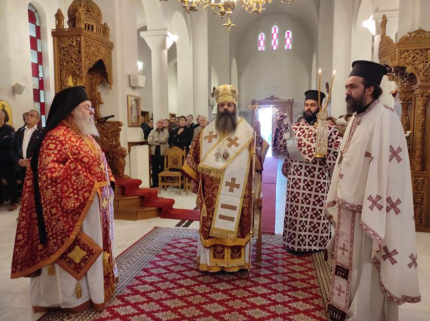 Ο Πρωτοσύγκελλος της Ι. Μητροπόλεως μας Θεοφιλέστατος Επίσκοπος Κεγχρεών κ. Αγάπιος ετέλεσε τον πανηγυρικό Όρθρο και την Θ. Λειτουργία στο εορτάζον Ι. Ησυχαστήριο Αναλήψεως – Αγίου Γερασίμου Περαχώρας με συλλειτουργούς τον Πανοσ. Αρχιμ. π. Αντίπα Νικηταρά, Προηγούμενο της Ι. Μονής Αγίου Ιωάννου Θεολόγου Πάτμου, τον Αιδεσ. Πρωτ/ρο π. Νικόλαο Γκάτσεβιτς, Εφημέριο Ιερού Προσκυνήματος Αγίας Βαρβάρας ομωνύμου Δήμου Αττικής και τους Διακόνους π. Χρήστο Χίλια και π. Άγγελο Σαλάτα.