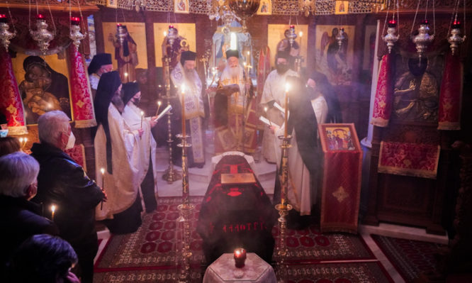 Στο Καθολικό της Ι. Μονής Τιμίου Προδρόμου Ναούσης τελέστηκε το μεσημέρι της Τετάρτης, 02 Φεβρουαρίου 2022, η εξόδιος ακολουθία στη μακαριστή Καθηγουμένη, μοναχή Μεθοδία, η οποία εκοιμήθη την 31η Ιανουαρίου από κορωνοϊό.
