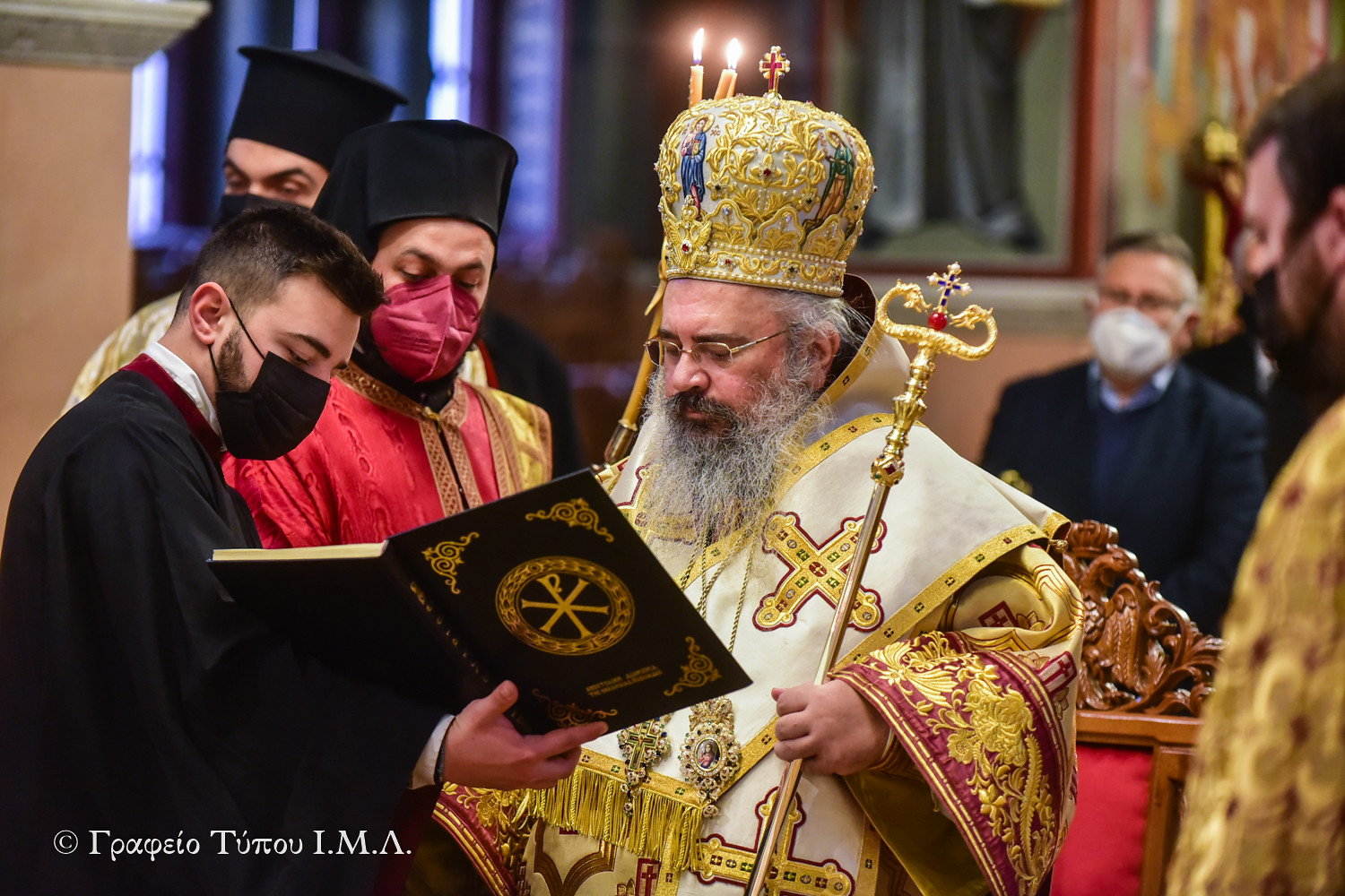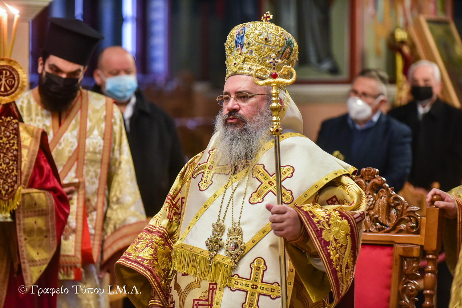 Στο σύντομο κήρυγμά του ο Σεβασμιώτατος, ανήμερα της Πρωτοχρονιάς, εξέφρασε προς όλους τις ευχές του για ένα ευλογημένο και δημιουργικό Νέο Έτος, το οποίο να είναι πάροχος πάσης χάρητος για τους ίδιους και τις οικογένειές τους, προτρέποντας τους να έχουν σταθερή Πίστη και με πολλή προσευχή να καταφέρει η Πατρίδα μας να ανταπεξέλθει σε όλες τις δυσκολίες που υπάρχουν.