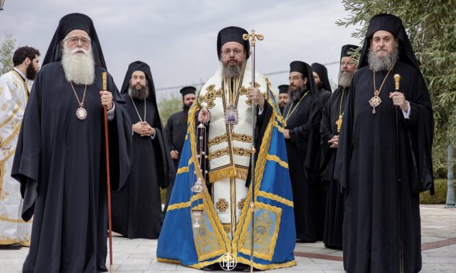 Ακολούθησαν ο Όρθρος και η Πολυαρχιερατική Θεία Λειτουργία, ιερουργούντος του Σεβ. Ποιμενάρχου μας κ. Ιγνατίου, στο τέλος της οποίας τέλεσε μνημόσυνο για την ανάπαυση προσφιλών του προσώπων.