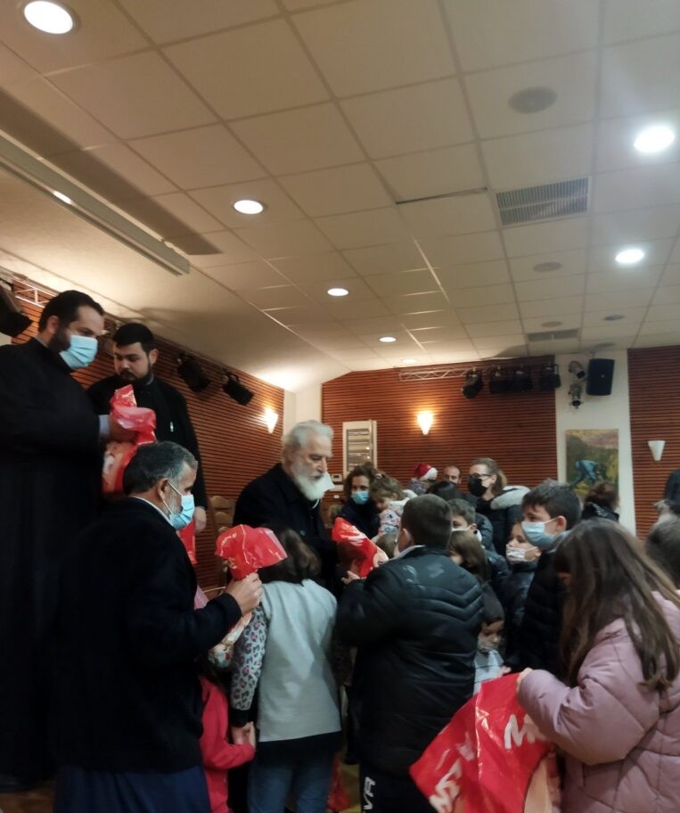 Ο Σεβ. Μητροπολίτης κ. Ανδρέας αφού καλοσώρισε τους παρευρισκομένους μικρούς και μεγάλους, στο τέλος των εκδηλώσεων μοίρασε δώρα στα παιδιά του σεισμόπληκτου Αρκαλοχωρίου ευχόμενος σε όλους να εορτάσουμε με υγεία και ευλογία τα Χριστούγεννα.