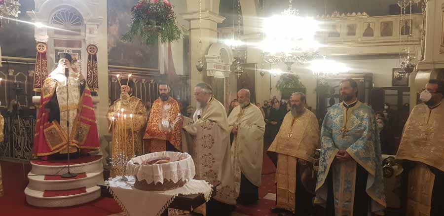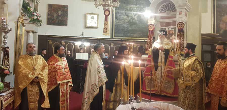 Το πρωί της αγιωνύμου ημέρας, Παρασκευή 11 Φεβρουαρίου 2022, πραγματοποιήθηκε Αρχιερατικό Συλλείτουργο, προεξάρχοντος του Σεβασμιωτάτου Μητροπολίτου Σύρου, Τήνου, Άνδρου, Κέας, Μήλου και Μυκόνου κ. Δωροθέου και συνιερουργούντος του οικείου ποιμενάρχου κ. Νεκταρίου.