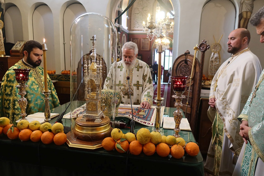 Τέλος ευχαρίστησε τον Πρωθιερέα του Ναού για τη φιλοξενία και τους πιστούς για την παρουσία τους, προς τους οποίους, μαζί με το Αντίδωρο, διένειμε καρπούς εσπεριδοειδών, τους οποίους είχαν προσφέρει οι κάτοικοι της περιοχής και με τους οποίους είχε διακοσμηθεί ο Ναός.