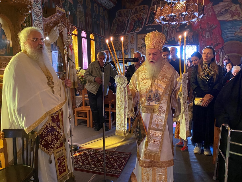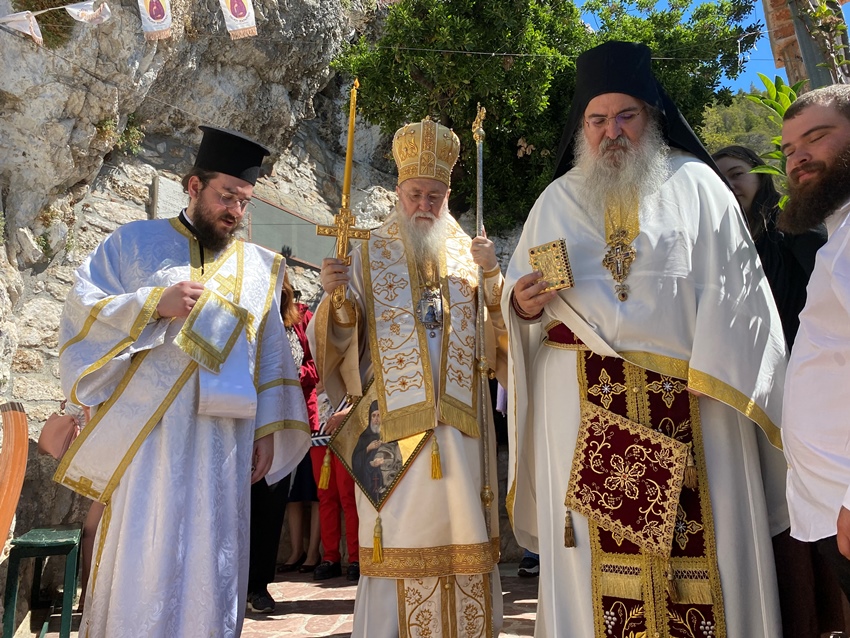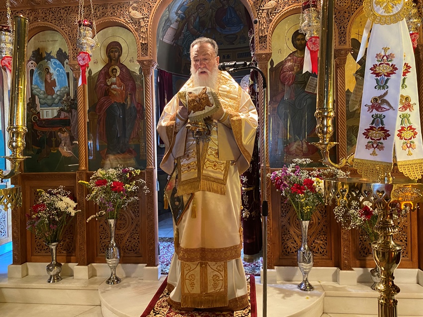 Ανήμερα της Εορτής, Τρίτη της Διακαινησίμου, 7 Μαΐου 2024, ο Σεβασμιώτατος πλαισιούμενος από τους συνοδούς του Κληρικούς τέλεσε πανηγυρική Αρχιερατική Θ. Λειτουργία, στην οποία παρέστησαν η Πρόεδρος του Δικηγορικού Συλλόγου Κορίνθου κ. Παναγιώτα (Πέννυ) Επιβατινού και ευσεβείς προσκυνητές.