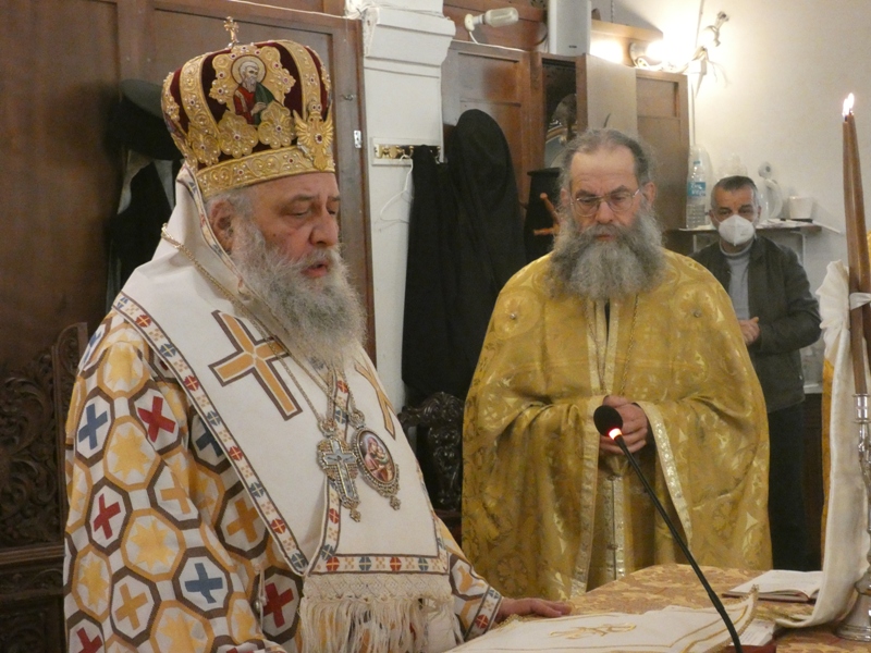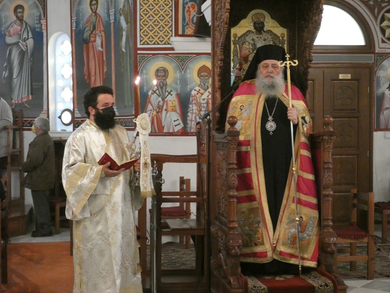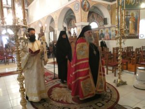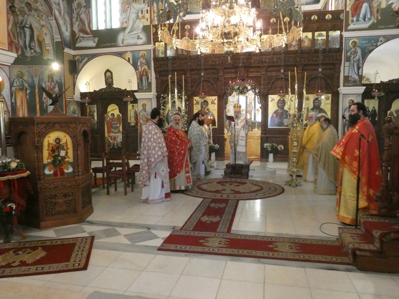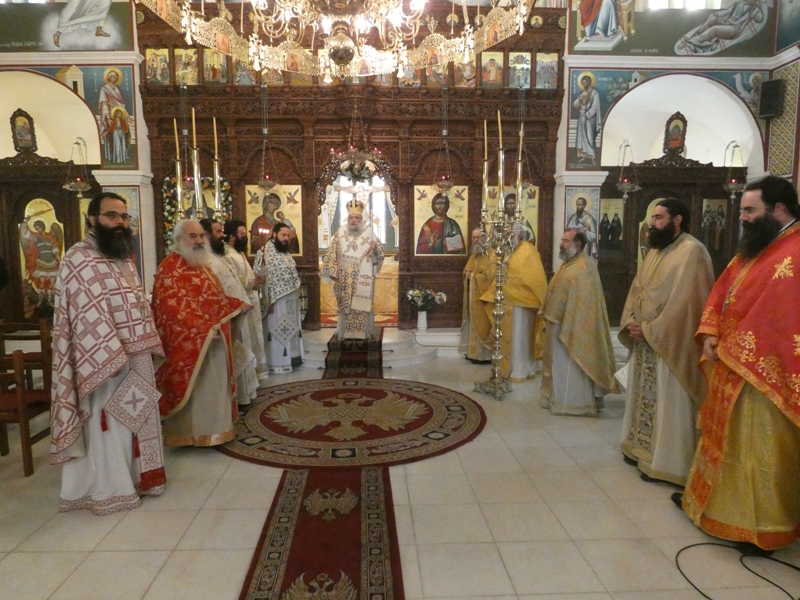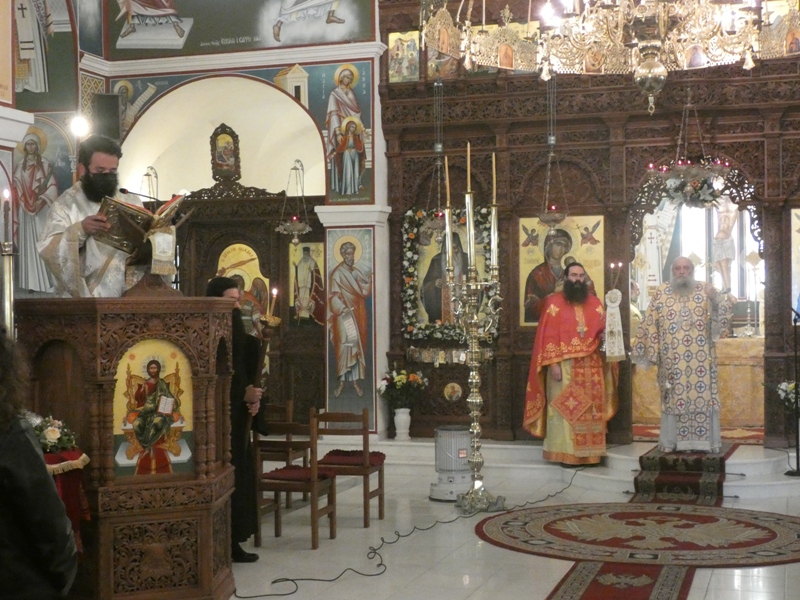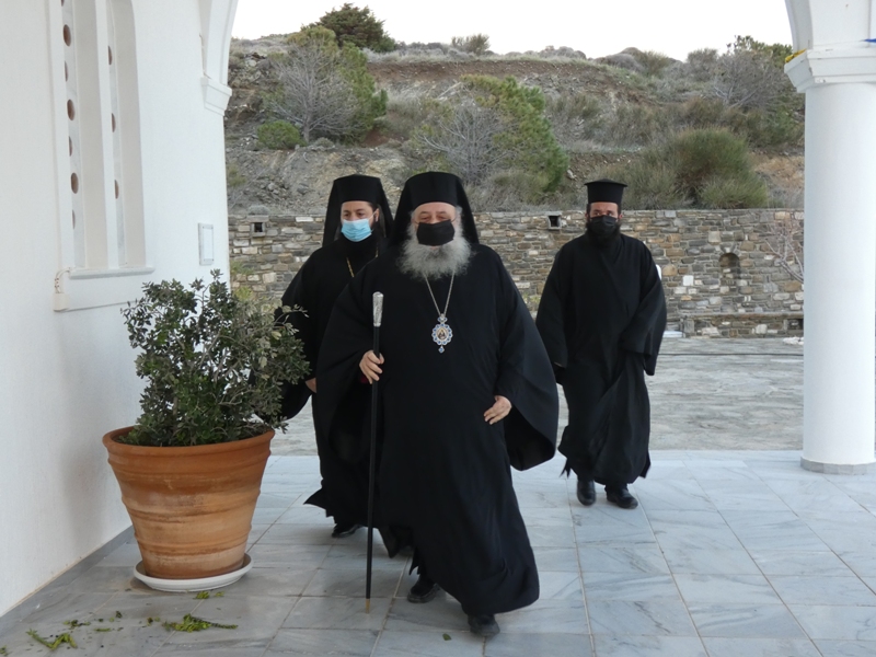 Στη Θεία Λειτουργία συμμετείχε ο παριανός λαός με επικεφαλής τους τοπικούς άρχοντες του νησιού. Προ του «Δι’ ευχών» ο Σεβασμιώτατος απηύθυνε ευχές προς τους εκκλησιαζομένους και ευχήθηκε ιδιαιτέρως για την ασθενούσα Γερόντισσα Αρσενία, Ηγουμένη της Ιεράς Μονής.