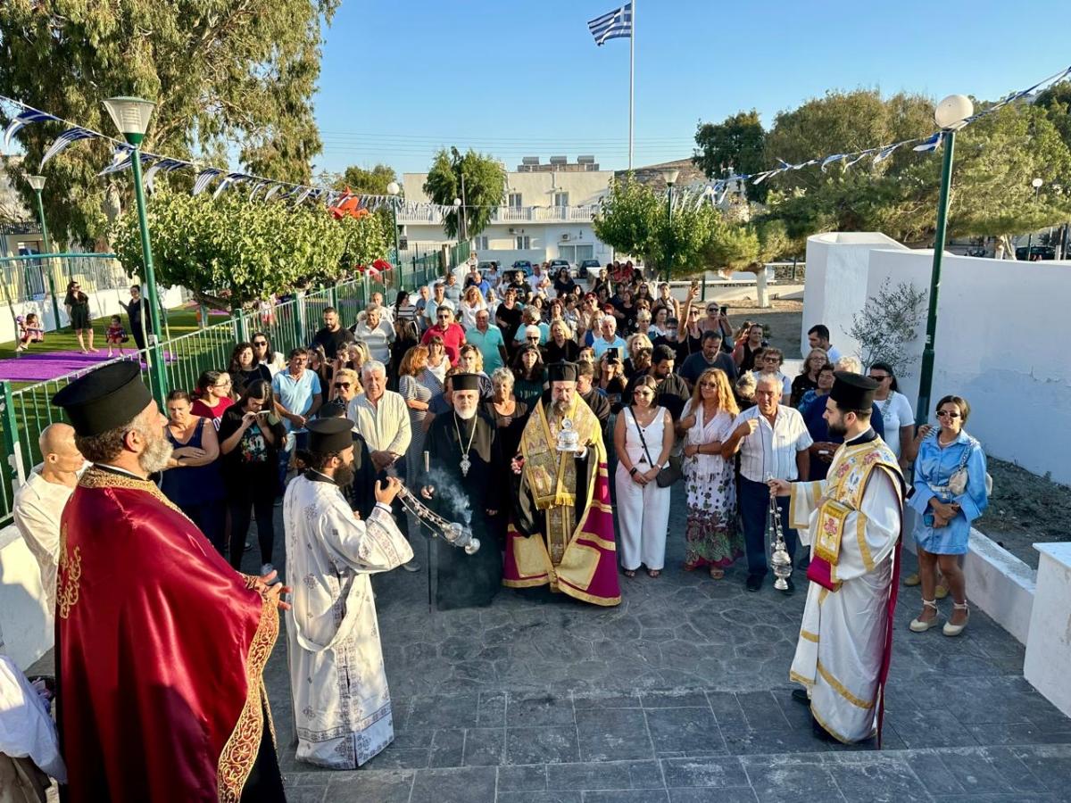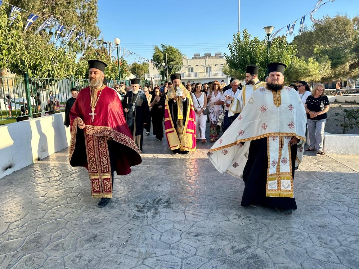 Το Ιερό Λείψανο (κτήμα της μακαριστής Καθηγουμένης Μακαρίας Μοναχής) εκόμισε ο Σεβασμιώτατος Μητροπολίτης Θήρας, Αμοργού & Νήσων κ. Αμφιλόχιος. Μετά την τελετή υποδοχής, στην οποία συμμετείχαν κληρικοί της Ιεράς Μητροπόλεως και πλήθος ευσεβών προσκυνητών, τελέστηκε Αρχιερατικός Εσπερινός και η πρώτη Παράκληση προς την Υπεραγία Θεοτόκο ενώπιον της θαυματουργού ιεράς εικόνος Της, της «Ιεροσολυμιτίσσης», η οποία θησαυρίζεται στον Ιερό Ναό.