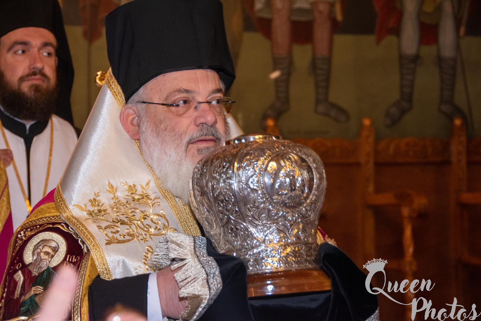 Την τιμία κάρα του Αγίου συνόδευσε, με την ευλογία του Μακαριωτάτου Αρχιεπισκόπου Αθηνών και πάσης Ελλάδος κ. Ιερωνύμου, ο Πρωτοπρεσβύτερος Γεώργιος Πασπαλιάρης, εφημέριος του εν Αθήναις Ιερού Ναού Αγίου Ιωάννου του Κυνηγού, στην λεωφόρο Βουλιαγμένης, όπου φυλάσσονται η τιμία κάρα και τα λείψανα του Αγίου. Ακολούθως υπό του Σεβασμιωτάτου τελέσθηκε το μυστήριο του Ιερού Ευχελαίου.