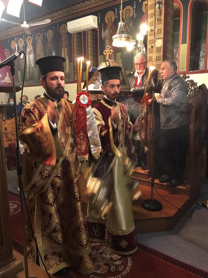 Στην ακολουθία του Όρθρου και τη Θεία Λειτουργία προέστη Πανοσιολογιώτατος Αρχιμανδρίτης π. Κυριακός Τσολάκης, Ιεροκήρυξ της Ιεράς μας Μητροπόλεως.