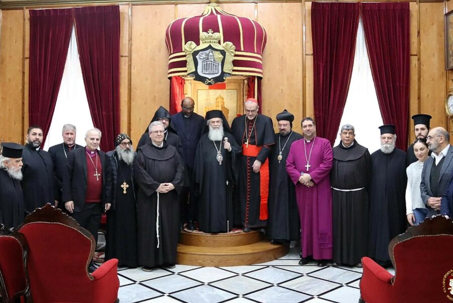 Εἰς τήν συνάντησιν ταύτην συμμετεῖχον οἱ Προκαθήμενοι τῶν ΧριστιανικῶνἘκκλησιῶν εἰς τήν Ἱερουσαλήμ, μεταξύ τῶν ὁποίων: ὁ Λατῖνος Πατριάρχης εἰς Ἱεροσόλυμα Καρδινάλιος Pierbattista Pizzaballa, ὁ Κουστωδός τῆς Ἁγίας Γῆς π. Francesco Patton, ὁ ἐπί κεφαλῆς τῆς ἈγγλικανικῆςἘκκλησίας εἰς Ἱερουσαλήμ Ἀρχιεπίσκοπος Hosam Naoum καί ἐκπρόσωποι τοῦ Ἀρμενικοῦ Πατριαρχείου καί τῆς Κοπτικῆς Ἐκκλησίας εἰς Ἱεροσόλυμα.