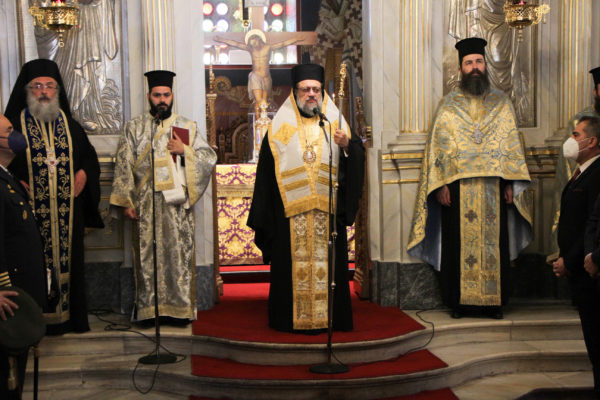Στην επίσημη Δοξολογία, η οποία τελέστηκε στον Μητροπολιτικό Ναό της Υπαπαντής του Χριστού, χοροστάτησε ο Σεβ. Μητροπολίτης Μεσσηνίας κ. Χρυσόστομος, παρουσία της πολιτικής και στρατιωτικής ηγεσίας.