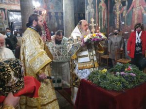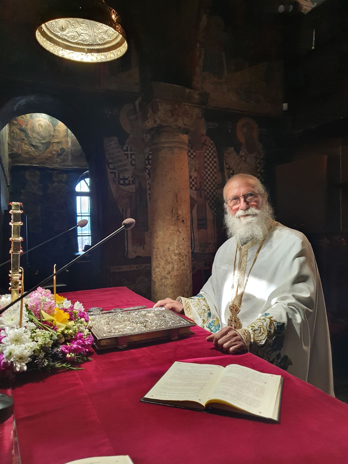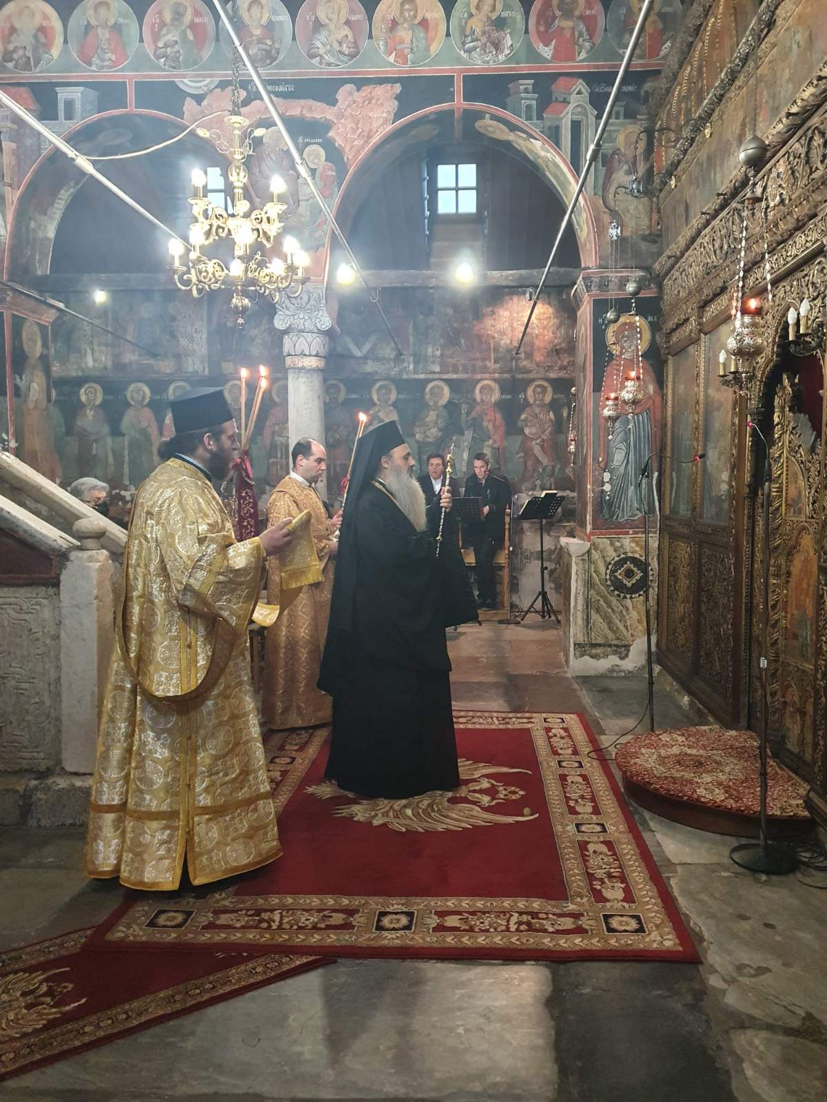 Μετά την υποδοχή, τελέσθηκε ο πανηγυρικός αρχιερατικός Εσπερινός, όπου ο σεπτός Ποιμενάρχης, μίλησε για την εορτή και την σημασία της για τους πιστούς.