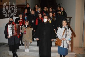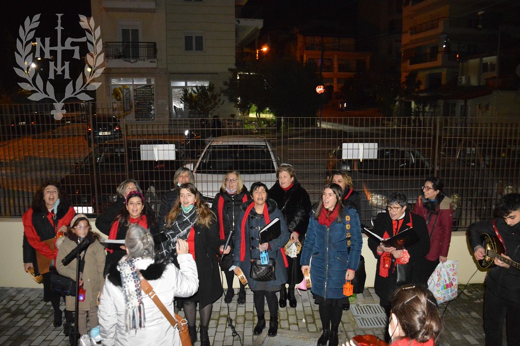 Μια εικοσαμελής ομάδα από τη Γυναικεία Χορωδία της Ιεράς Μητροπόλεως «Αγία Κασσιανή η Υμνογράφος» επισκέφτηκε το βράδυ της Πέμπτης 23 Δεκεμβρίου 2021, την «Εστία Παπαγεωργίου», όπου και έψαλε παραδοσιακά κάλαντα στον αύλειο χώρο.