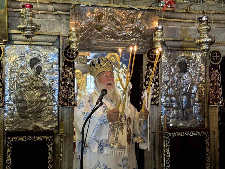 Ο Σεβασμιώτατος κάλεσε όλους τους ανθρώπους σε έξαρση προσευχής, να γονατίσουμε μπροστά στον Παντοκράτορα Κύριό μας, και εις το όρος της Μεταμορφώσεως που βρίσκεται και η μονή Παντοκράτορος, μεταξύ ουρανού και γης, να υψώσουμε ικετευτικά τα χέρια μας, καταδικάζοντας όλους εκείνους οι οποίοι θέλουν και αποζητούν την αποστασία του λαού του Θεού από την Εκκλησία Του.