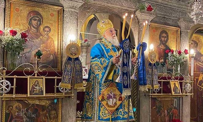 Κατά την Θεία Λειτουργία μίλησε στους συμμετέχοντες πιστούς, καθώς έλαβε αφορμή από το κοντάκιον του Αγίου και συγκεκριμένα «έθηκας την ψυχήν σου υπέρ του λαού σου».