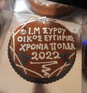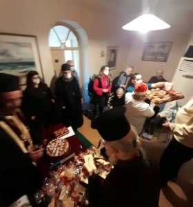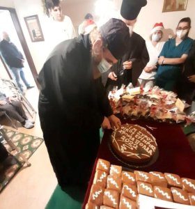 Κατά την τελετή της κοπής της πίτας παρέστησαν οι εργαζόμενοι και οι περιθαλπόμενοι σ’ αυτό, προς τους οποίους ο Διευθυντής του Ιδρύματος, Αρχιμ. Βενέδικτος Φραγκογιάννης, μετέφερε την αγάπη και τις ευχές του Σεβασμιωτάτου κ. Δωροθέου.