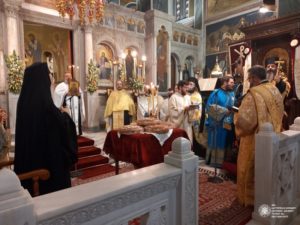 Συγκεκριμένα, την παραμονή της εορτής, Πέμπτη 10 Φεβρουαρίου 2022, τελέσθηκε ο Μέγας Πανηγυρικός Αρχιερατικός Εσπερινός, χοροστατούντος του Θεοφιλεστάτου Επισκόπου Κεγχρεών κ. Αγαπίου και συγχοροστατούντος του Σεβ. Μητροπολίτου Κορίνθου κ. Διονυσίου.