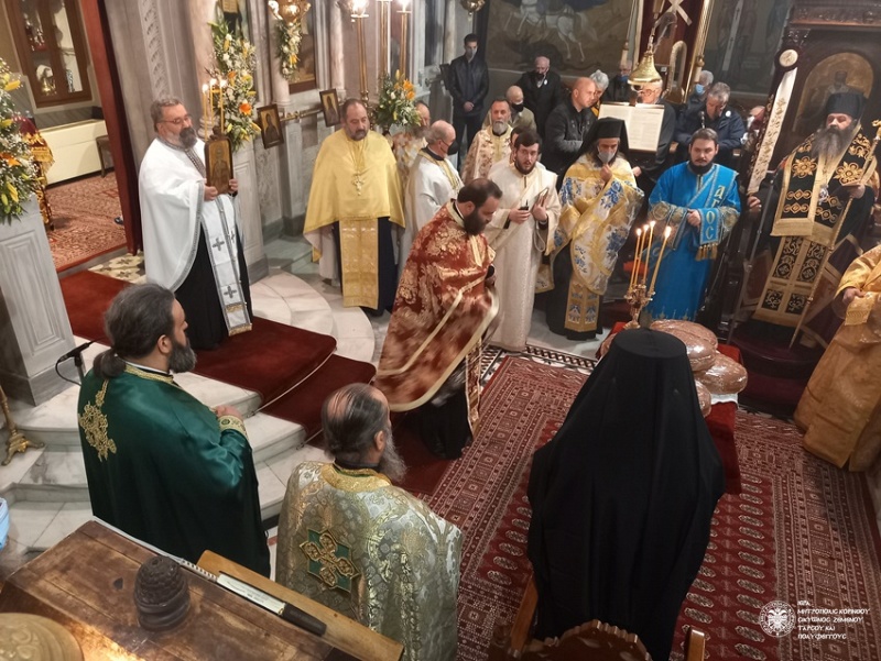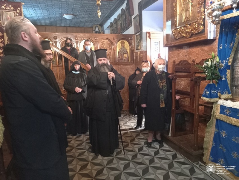 Συγκεκριμένα, την παραμονή της εορτής, Πέμπτη 10 Φεβρουαρίου 2022, τελέσθηκε ο Μέγας Πανηγυρικός Αρχιερατικός Εσπερινός, χοροστατούντος του Θεοφιλεστάτου Επισκόπου Κεγχρεών κ. Αγαπίου και συγχοροστατούντος του Σεβ. Μητροπολίτου Κορίνθου κ. Διονυσίου.