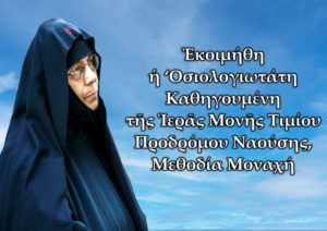 Έχασε τη μάχη με τον κορονοϊό η Καθηγουμένη της Ιεράς Μονής Τιμίου Προδρόμου Ναούσης, Μεθοδία Μοναχή, σήμερα 31 Ιανουαρίου 2022.