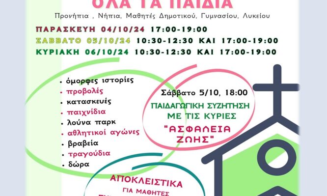 Ξεκίνησαν οι Κατηχητικές Συντροφιές στη Σύμη Δόγμα 03 Οκτωβρίου 2024 17:40 Κλικάρετε ΕΔΩ γιά νά ἀνοίξετε τήν ἀφίσα σέ μορφή ἀρχείου pdf. Κλικάρετε ΕΔΩ γιά νά ἀνοίξετε τήν ἀφίσα σέ μορφή ἀρχείου pdf. Tags: ΙΕΡΑ ΜΗΤΡΟΠΟΛΗ ΣΥΜΗΣ