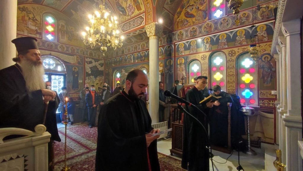 Στην Ιερά Ακολουθία, η οποία μεταδόθηκε απευθείας μέσω του Ραδιοφωνικού Σταθμού της Ιεράς Μητροπόλεως (89,4 fm) και από διαδικτύου, έψαλλαν μαθητές του Ωδείου της Ιεράς Μητροπόλεως «ΓΕΡΜΑΝΟΣ ο ΜΕΛΩΔΟΣ» και υποψήφιοι Κληρικοί, ενώ τον Σεβασμιώτατο πλαισίωσαν και μαθητές του Πρότυπου Εκκλησιαστικού Σχολείου Λαμίας.