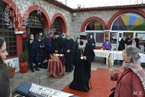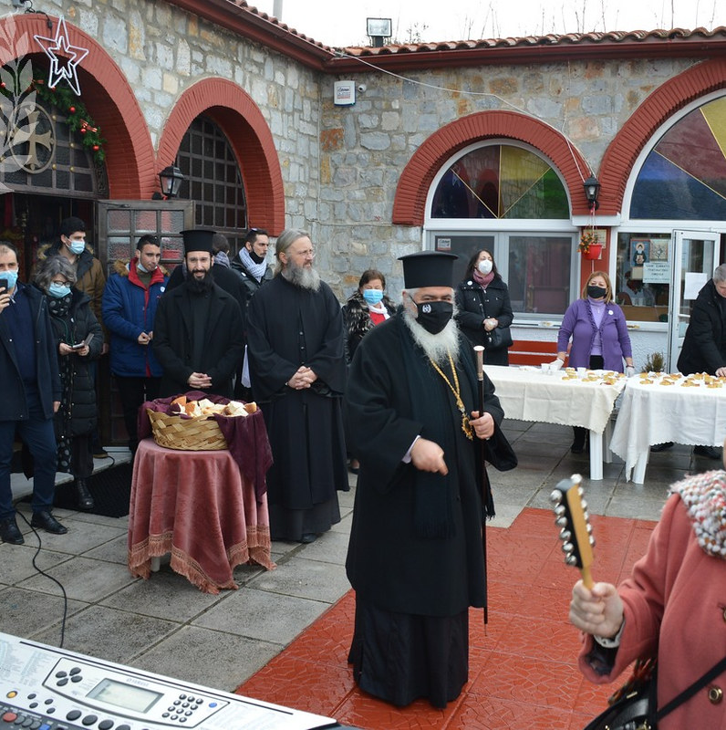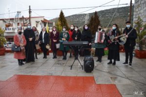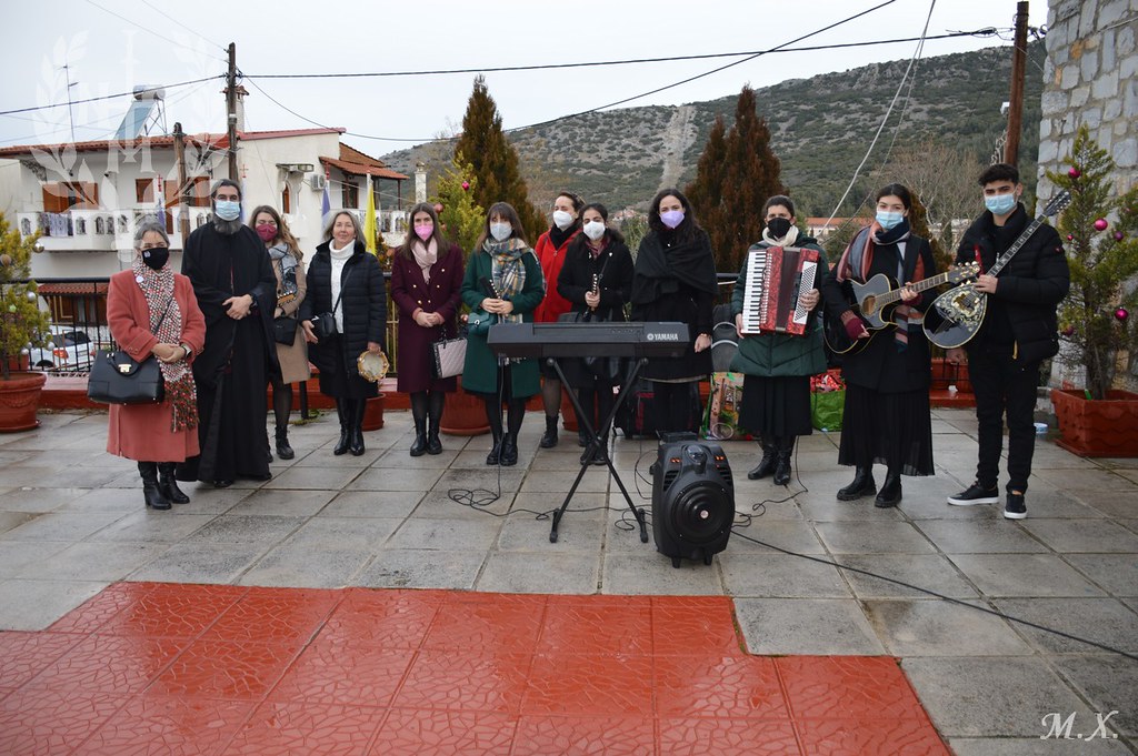 Στη γραφική αυλή του Ιερού Ναού, μέλη της χορωδίας της Μητροπόλεως «Αγία Κασσιανή η Υμνογράφος», απέδωσαν παραδοσιακά κάλαντα με τη θερμή συμμετοχή του εκκλησιάσματος.