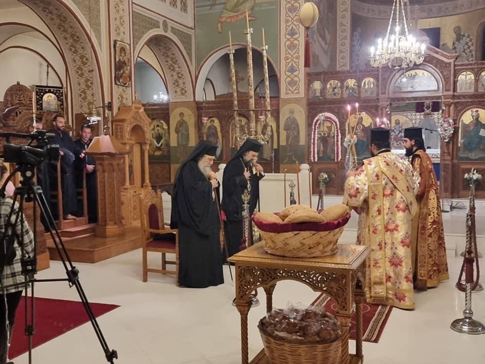 Κατά τον Μέγα Τρισαρχιερατικό Εσπερινό χοροστάτησε ο εκ Θράκης προσελθών Σεβασμιώτατος Μαρωνείας και Κομοτηνής κ. Παντελεήμων, ο οποίος κήρυξε τον θείο λόγο και ευλόγησε τους προσκομισθέντες άρτους της πανηγύρεως.