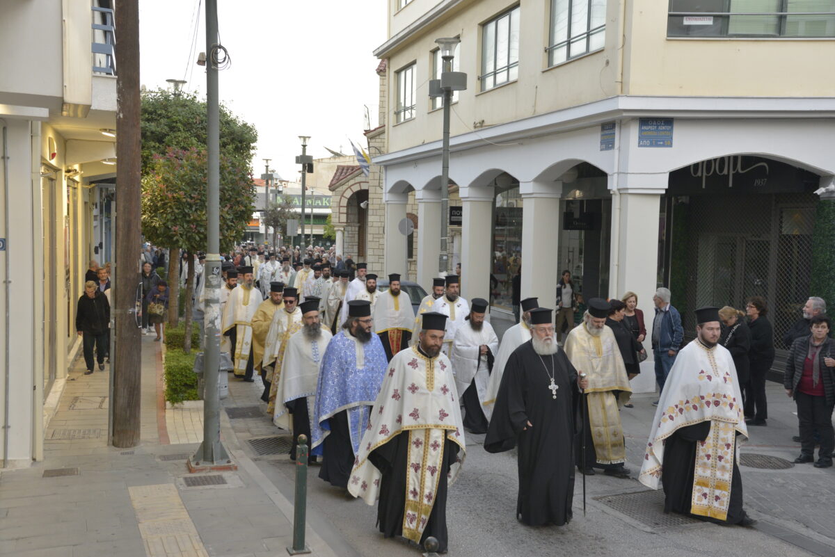 Μετά το πέρας της Ακολουθίας ο Σεπτός Ποιμενάρχης μας στην σύντομη προσλαλιά του ανέφερε ότι, «μετά από δεκάδες αιτήματα πιστών συγκεντρωθήκαμε σήμερα για να λιτανεύσουμε τα Άχραντα Πάθη του Κυρίου μας και για να αναπέμψωμε, με αισθήματα μετανοίας και βαθείας πίστεως προς τον Κύριο, δέηση και να παρακαλέσουμε, Εκείνον που σταυρώθηκε και έδωσε το αίμα Του για τη σωτηρία μας, να δείξει και πάλι την ευσπλαχνία και το φιλάνθρωπο έλεός Του για να σώσει τον τόπο μας και την πατρίδα μας από την παρατεταμένη περίοδο της ανομβρίας, να ανοίξει τους ουρανούς, να μας στείλει βροχή ειρηνική για την καρποφορία της γης. Να απαλύνει τον πόνο μας, καθώς η γη διψάει, οι φυσικές πηγές στερεύουν, οι καλλιέργειες κινδυνεύουν και ιδιαίτερα μάλιστα οι ελαιοκαλλιέργειες, που για δεύτερη συνεχή χρονιά δεν αναμένεται να αποδώσουν την προσδοκώμενη συγκομιδή. Η ανομβρία αυτή οφείλεται στο γεγονός ότι απομακρυνθήκαμε από τον Θεό, αποϊεροποιήσαμε και αποχριστιανοποιήσαμε την πατρίδα μας, θεσπίσαμε νόμους που είναι ενάντιοι στο θέλημα του Θεού. Γι᾽ αυτό σήμερα μετανοημένοι, με ταπείνωση, παρακαλούμε τον Κύριο, έχοντας ενώπιόν μας τα Άχραντα Πάθη, να μην μας εγκαταλείψει, να μην άρει την ζωοποιό χάρη Του από το λαό Του. Αυτή η θεία χάρη είναι εκείνη που πάντοτε, σε όλες τις δυσκολίες που περάσαμε σαν λαός, μας σώζει και μας σκεπάζει. Διότι, αν Εκείνος πάρει την χάρη Του από τον κόσμο και εμάς τους ανθρώπους, τότε γευόμαστε και βιώνουμε καταστροφικές για εμάς και τον κόσμο ολόκληρο καταστάσεις. Στη συνέχεια ο Σεβασμιώτατος κάλεσε τους πιστούς να εντείνουν με θέρμη την προσευχή τους αυτές τις ημέρες επαναλαμβάνοντας εκ βαθέων την καρδιακή προσευχή «Κύριε Ιησού Χριστέ, Υιέ και Λόγε του Θεού, ελέησον ημάς τους αμαρτωλούς και μην μας εγκαταλείπεις». Να μην παύσουν να ελπίζουν στον Τριαδικό Θεό και την Παναγία Μητέρα μας αναφωνώντας από την καρδιά τους τα λόγια: «την πάσαν ελπίδα μου εις σε ανατίθημι, Μήτερ του Θεού φύλαξόν με υπό την σκέπην Σου».