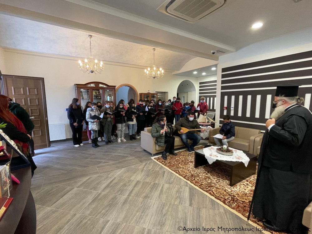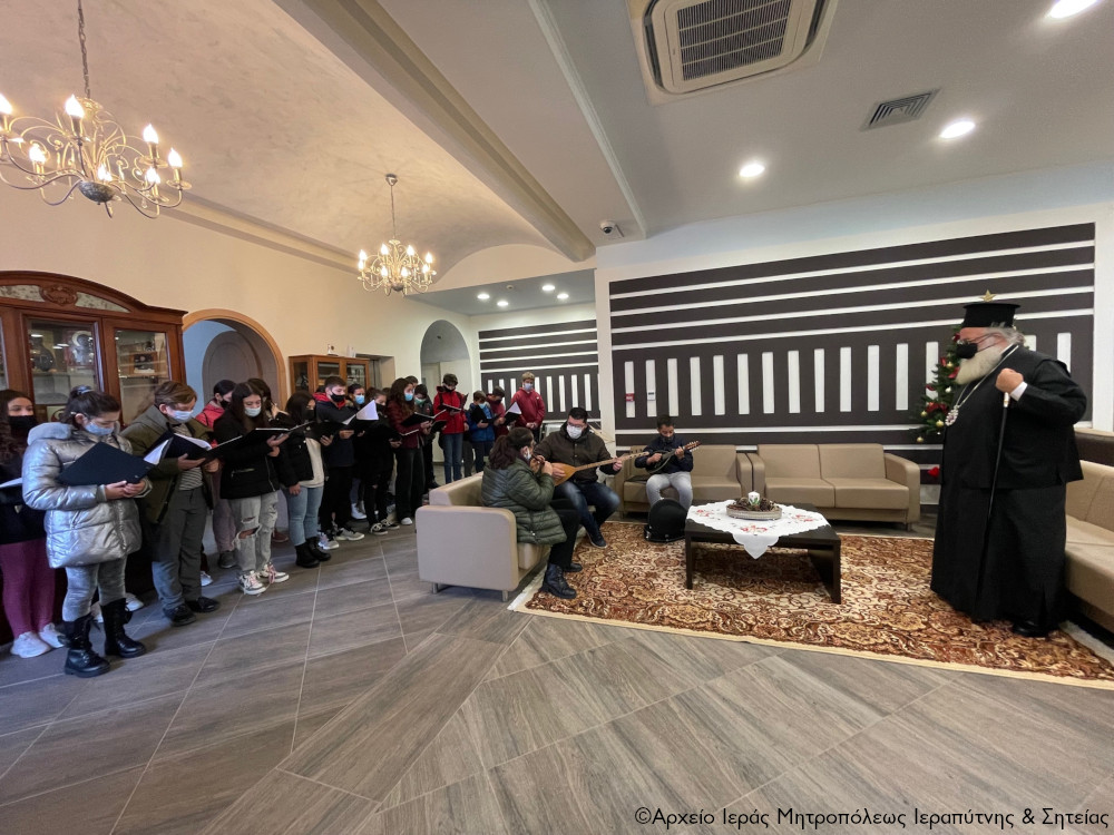 Το πρωί της Παρασκευής 17 Δεκεμβρίου 2021 ο Σεβ. Μητροπολίτης Ιεραπύτνης και Σητείας κ. Κύριλλος δέχθηκε τους μαθητές του Μουσικού Γυμνασίου Λασιθίου, οι οποίοι έψαλλαν με τη συνοδεία μουσικών οργάνων παραδοσιακά κάλαντα των Χριστουγέννων, όπως τα βυζαντινά, τα κρητικά και κάλαντα από άλλες περιοχές της Ελλάδος.