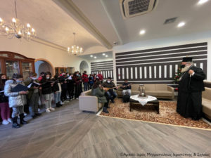 Τους μαθητές συνόδευαν οι Καθηγητές του σχολείου με επικεφαλής την Διευθύντρια κ. Μαριάννα Χαΐτα, οι οποίοι αντάλλαξαν ευχές με τον Σεβ. Μητροπολίτη κ. Κύριλλο και συζήτησαν για την λειτουργία και την πορεία του Σχολείου.