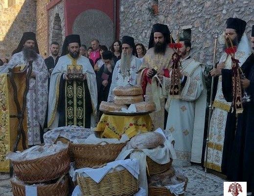 Ειδικότερα, το απόγευμα της παραμονής τελέσθηκε ο πανηγυρικός Αρχιερατικός Εσπερινός μετ’ αρτοκλασίας χοροστατούντος του Βοηθού Επισκόπου της Ι. Μητροπόλεώς μας, Θεοφιλεστάτου Επισκόπου Λακεδαιμονίας κ. Θεοφίλου, ο οποίος και απηύθυνε λόγο πνευματικής οικοδομής στους προσκυνητές, που είχαν κατακλύσει το Καθολικό και τον προαύλιο χώρο.